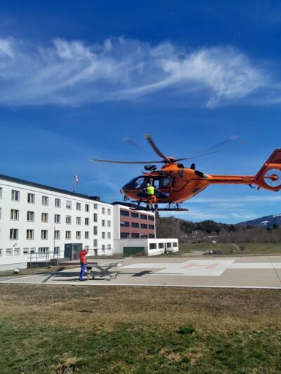 Nach weiterer, aufwändiger Versorgung und Beatmung des Patienten, wurde der Patient in die Klinik Immenstadt geflogen.